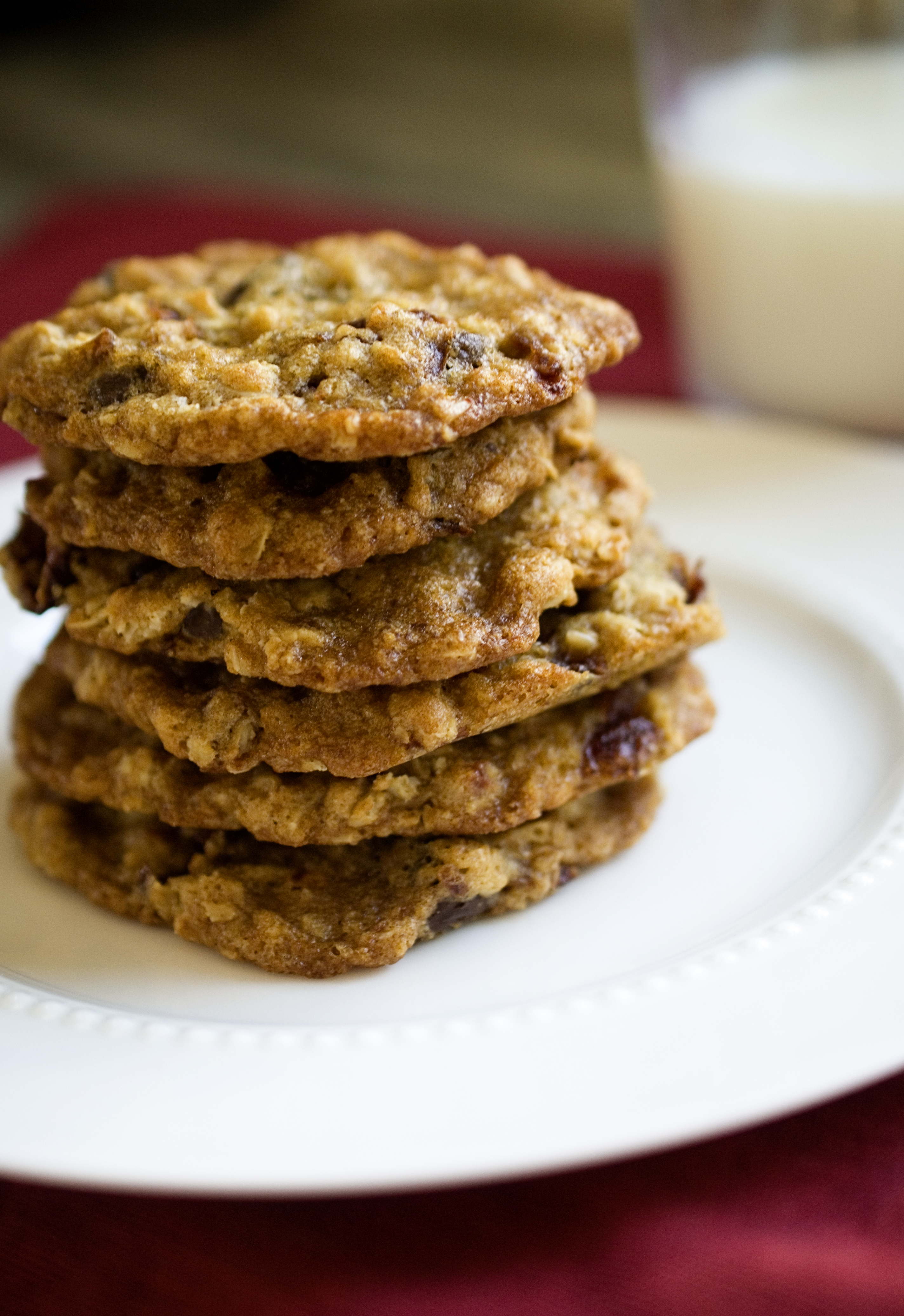 CRDC0018I decided to squeeze in one more post before Christmas because these cookies are too good not to share with you. I rarely turn down a cookie, but my favorite cookie is oatmeal chocolate chip. When I saw a recipe on the blog Simply Scratch for rum cherry & chocolate chunk cookies I was inspired to make an oatmeal version. These cookies are chewy and sweet with bits of dark chocolate and rum soaked dried cherries in every bite. They are a perfect addition to any dessert table or holiday cookie exchange. Give them a shot this weekend!