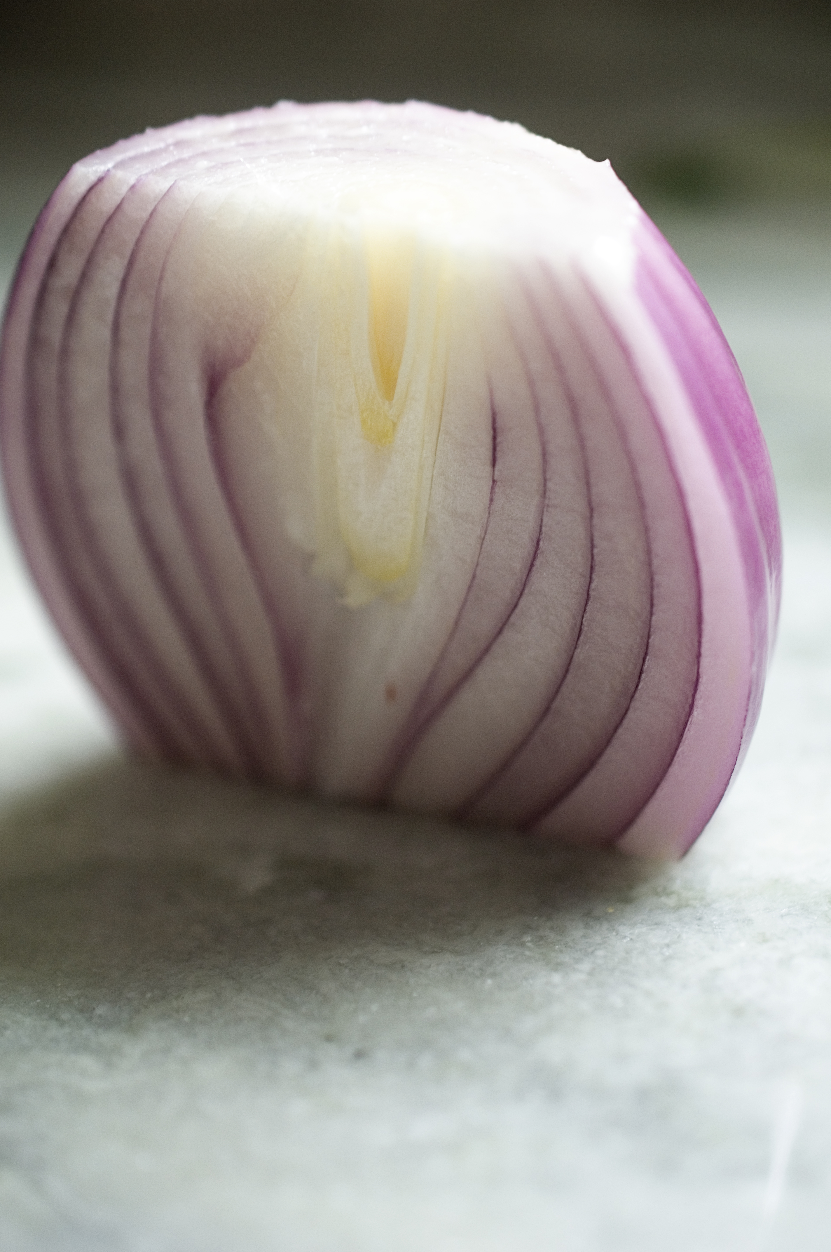 Half of a red onion, well chopped, is all you need. The onion flavor will get stronger as it sits but is not overpowering. How pretty is that onion?