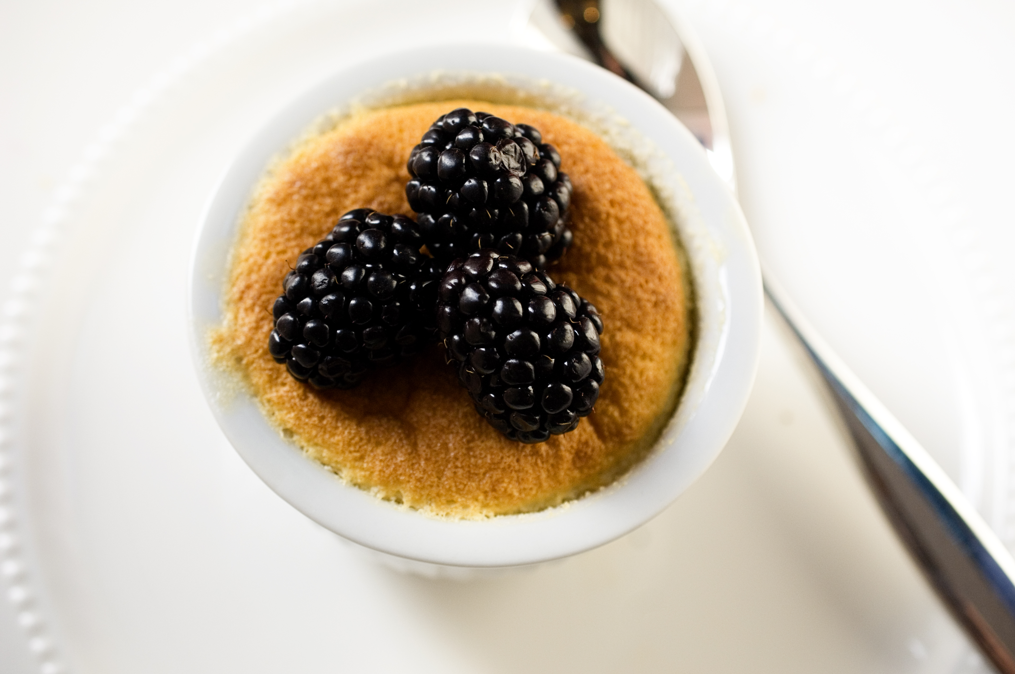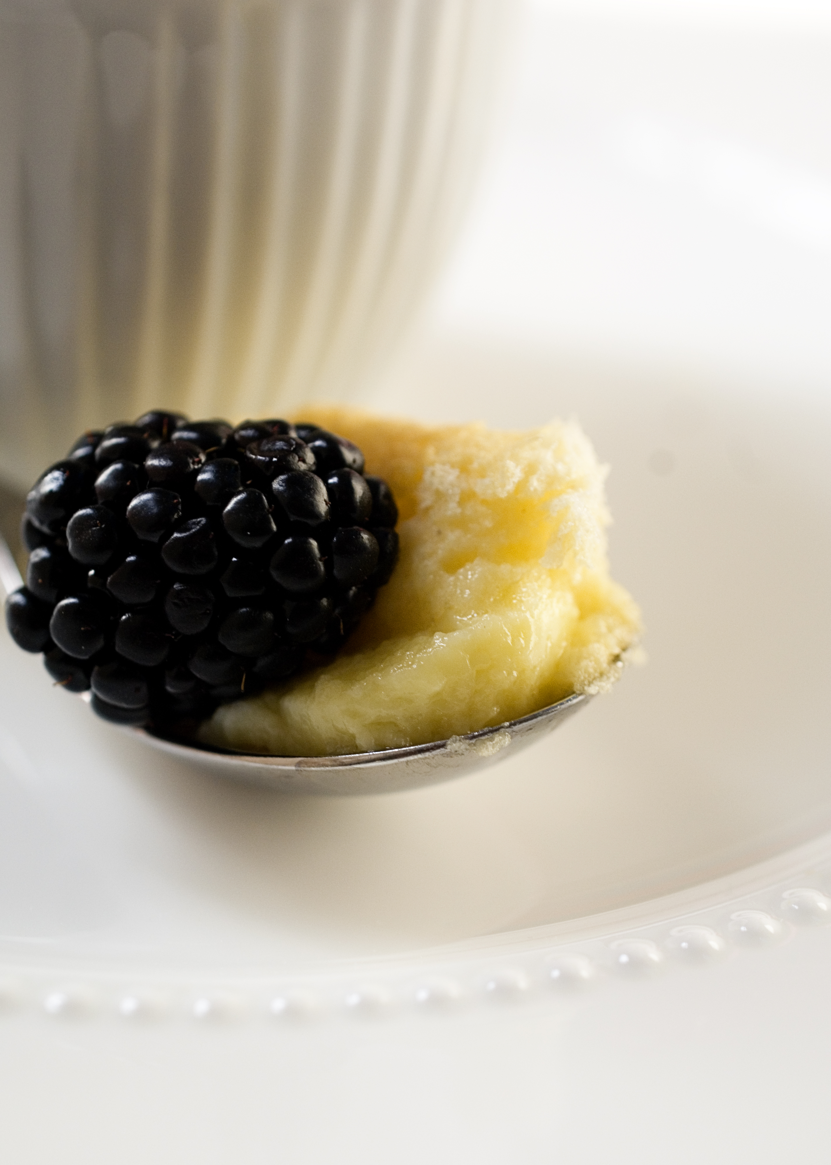 When the cakes come out of the oven they are puffy and golden with a warm and gooey pudding/curd waiting underneath the light and airy cake. I think they taste best warm or at room temperature. I like them topped with fresh fruit like blackberries or raspberries.