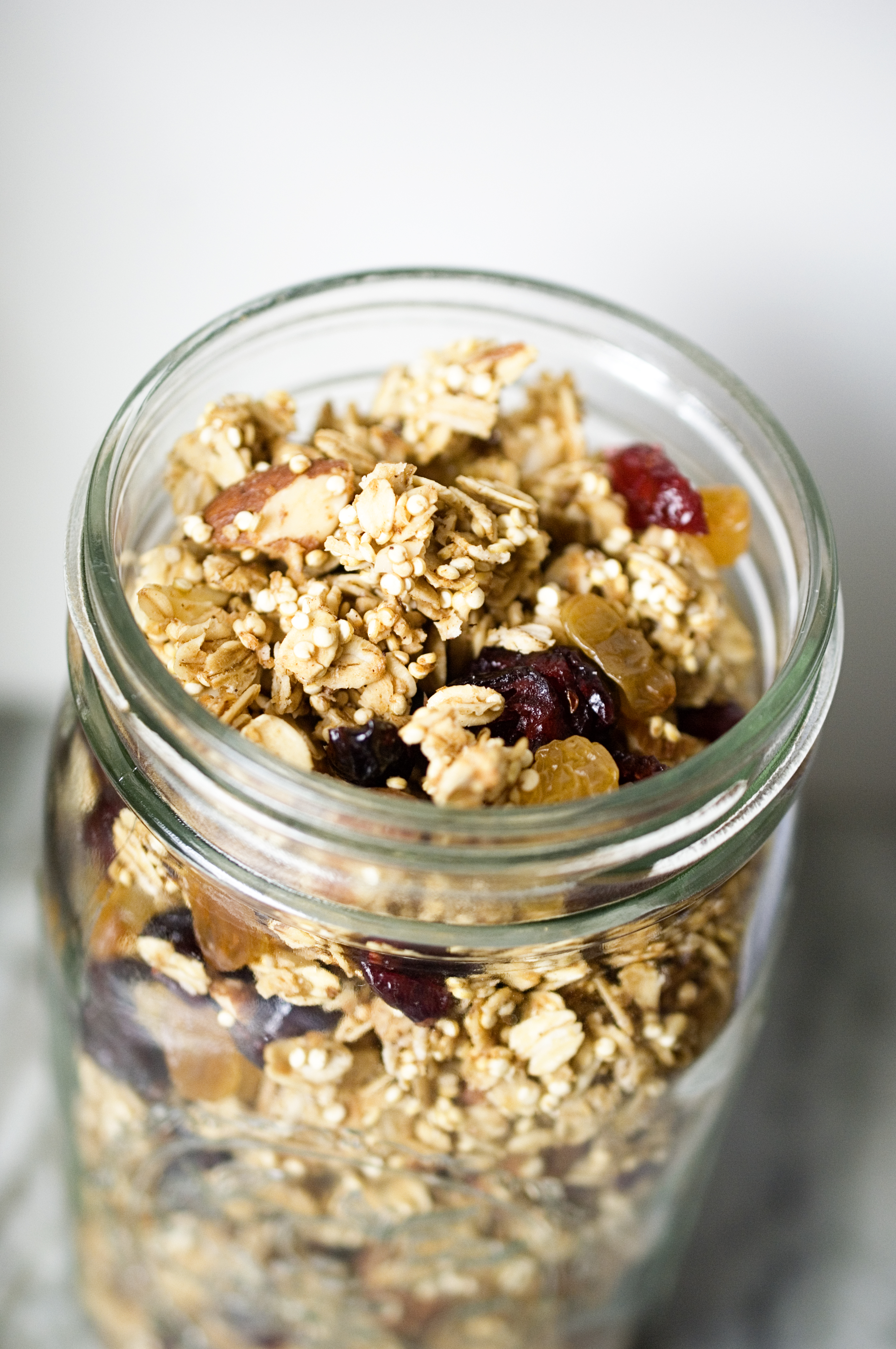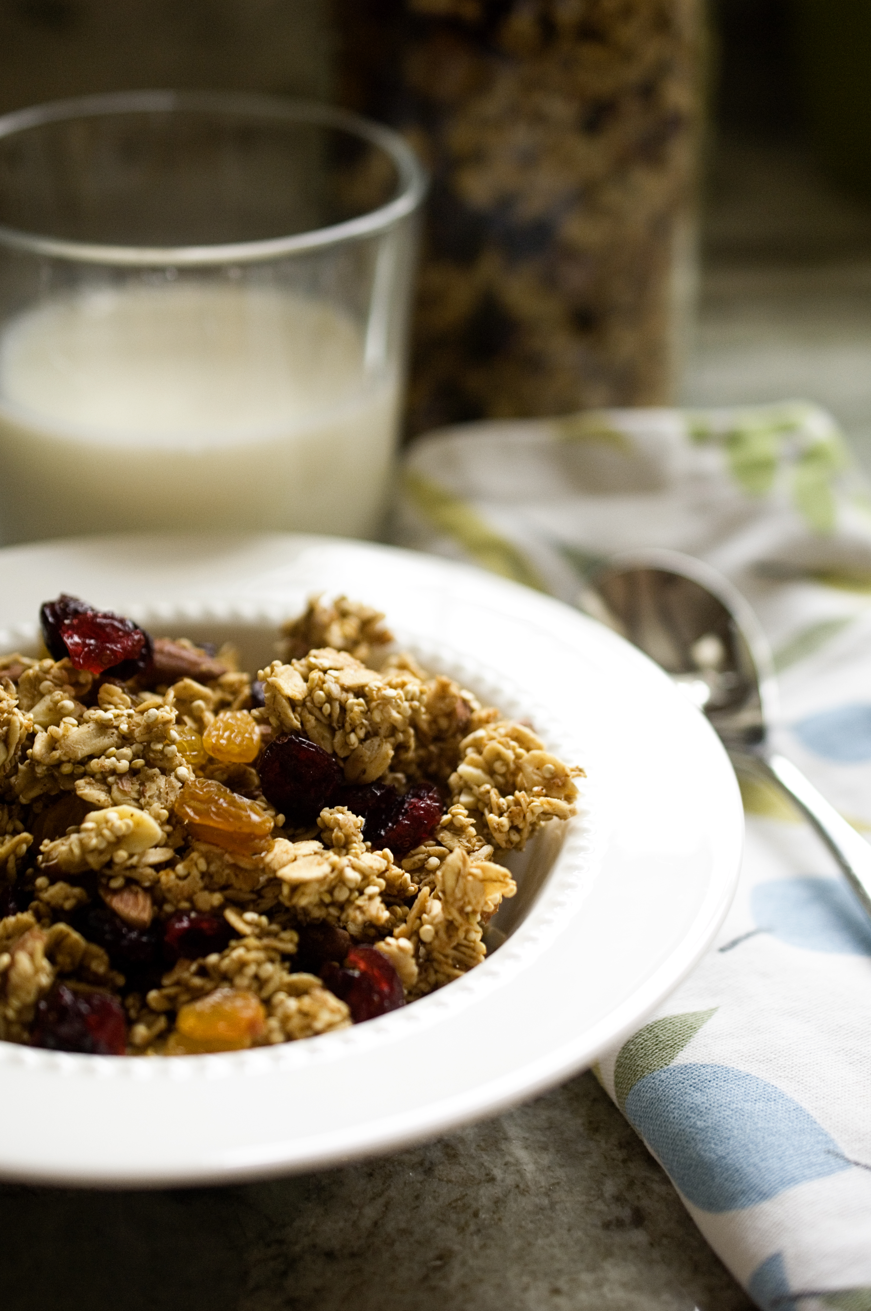 Maple Quinoa Granola Clusters with Almonds and Dried Cranberries